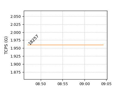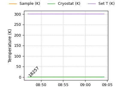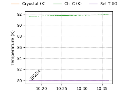 | Cryostat (K) | Ch. C (K) | Set T (K) | HTR Pwr (%) | LCPS (G) | wLF (G) | TCPS (G) | MF (SLM) |
